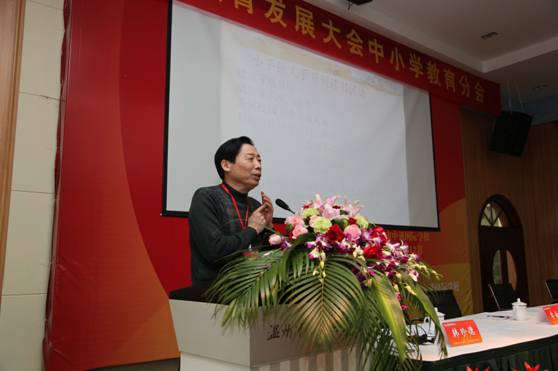 在崔树毅秘书长致会议开幕词后,首先由我校副校长李余献作题为《建一所现代“笑园”》的主题报告,详细介绍了中通国际学校在温州市政府出台的民办教育改革“1+