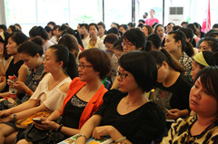 随后集中多功能厅开展了半日活动的研讨会。在研讨会上,实艺新府幼儿园应春芬园长作了《科学保教、优化管理》的经验交流发言;鹿城区教科研中心陈碧霄老师作了精彩点评,她认为:实艺幼教集团半日活动充分体现了“以幼儿为本、以游戏为主”的理念,活动安排精致,重视幼儿生活教育;师资素质好,有爱心与孩子互动亲切,让孩子愉快、有安全感;园舍优美,让人以公园、乐园之感,人文景观的创设富有文化、艺术和教育意义;整个活动给孩子们创设一个很轻松很自由的氛围,幼儿一日管理各环节落实到位、科学规范。陈碧霄老师在点评中还激励现场的园长要紧紧围绕《3—6岁儿童学习与发展指南》中四个关键词“自由、自主、自理、自律”,做好幼儿园一日活动,真正将科学保教工作落到实处。在研讨中,专家与园长还进行有效地互动,如园长们提出:如何在区域活动中体现幼儿的自主?如何让老师们取消区域创设的恐惧感?如何在快乐午餐环节中体现幼儿的自主?等等,陈碧霄老师都一一做了精彩的回答,博得了阵阵热烈的掌声。