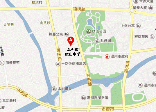v 交通线路指引: 温州市绣山中学位于市区惠民路866号。可乘38路、58路、7路、74路公交车到“实验中学绣山校区”站即可。学校位于市政府、绣山公园的西部,交通便利。走 (联系人: