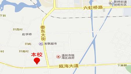 3、洞头方向过灵昆大桥后上瓯海大道,往西直行至娄东大街(瓯海区政府)出口下,第一个红绿灯直走300米靠右即可到达学校。