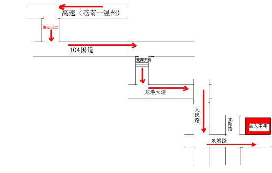 自驾车路线:高速萧江出口下—-左转进入104国道(平阳、温州方向)—-行驶约7公里右转至龙港大桥—-直行约1公里左转进入龙港大道—-直行约3公里右转至人民路—-直行约4公里左转进入东城路—-直行约2公里到学校)。