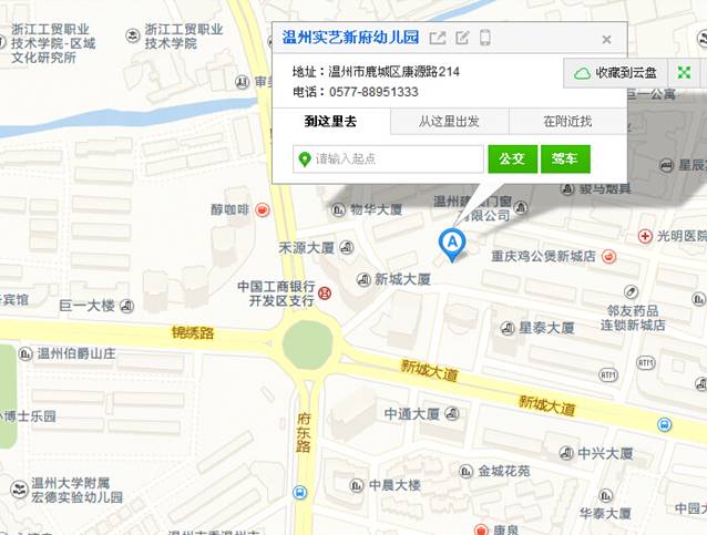 鹿城区实艺新府幼儿园 地址:鹿城区新城康源路214号。(温州晚报后面) |