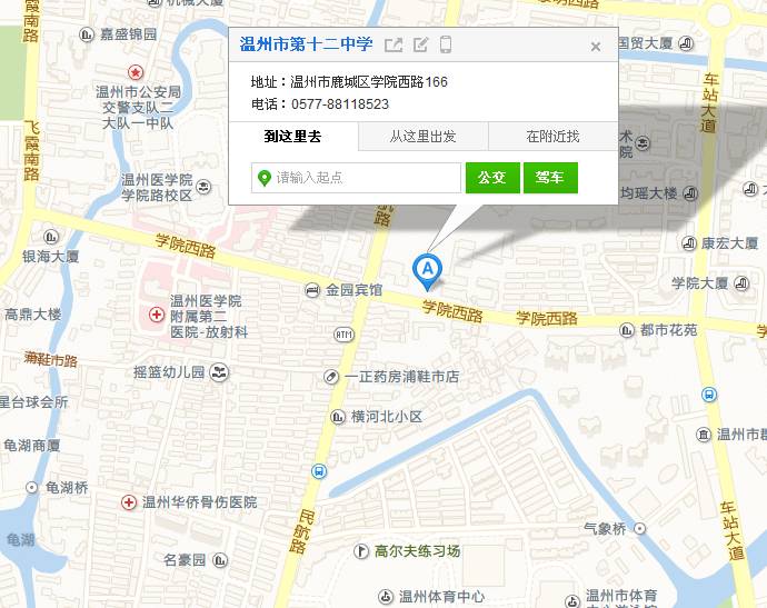温州市十二中学 地址:温州市鹿城区学院西路166号 |